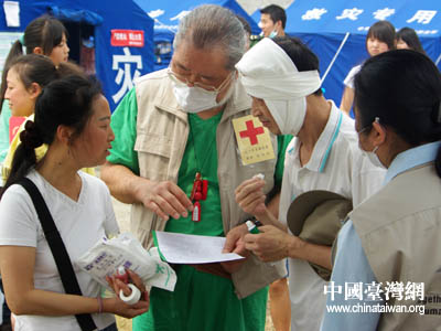 臺灣紅十字組織醫療隊檢查受災群眾