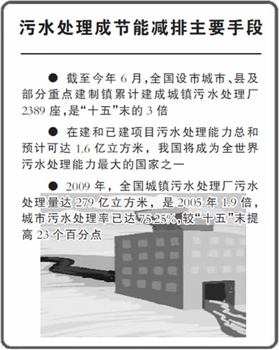 隨著工業化、城鎮化進程加快,經濟快速發展,人民生活水平不斷提高,污水排放量也在不斷增加。城鎮污水處理事業的發展,直接關系到城市公共衛生安全與人居環境質量的改善。“十一五”期間,我國不斷加大對城鎮污水處理設施建設的投資力度,積極引入市場機制,城鎮污水處理事業進入發展快車道。截至2010年6月,全國設市城市、縣及部分重點建制鎮累計建成城鎮污水處理廠2389座,總處理能力達到1.15億立方米/日,分別是“十五”末的3倍和2倍。西藏自治區第一座污水處理廠昌都地區污水處理廠的建成調試,標志著我國所有省、自治區、直轄市均已建成城鎮污水處理廠,其中北京、上海、山東、江蘇、浙江、河南、安徽、海南等省(直轄市)實現了縣縣建有污水處理廠。