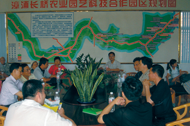 圖1:漳州市漳浦縣海峽兩岸農(nóng)業(yè)合作實(shí)驗(yàn)區(qū)負(fù)責(zé)人向訪問團(tuán)介紹情況。