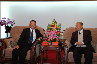 圖1:全國(guó)政協(xié)副主席、中國(guó)和平統(tǒng)一促進(jìn)會(huì)副會(huì)長(zhǎng)張克輝(右)會(huì)見訪問團(tuán)成員(左為訪問團(tuán)團(tuán)長(zhǎng)陳孝忠)。