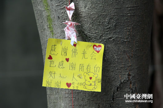 彰明中學學生用折紙鶴,寫感恩卡等方式,表達對臺灣佛光會無私援助的感謝之情。(中國臺灣網 鐘寶華 攝)