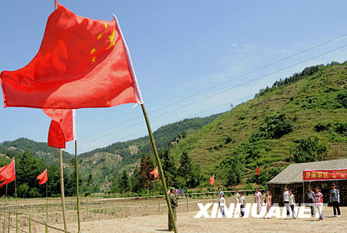青川是大地震中受災(zāi)最嚴(yán)重的地區(qū)之一。地震發(fā)生后,青川縣專門購置了7500多面國旗,下發(fā)到每個安置點和每家每戶。到處飄揚的五星紅旗極大鼓舞了人們抗震救災(zāi)的士氣。 新華社記者 楊金志 攝