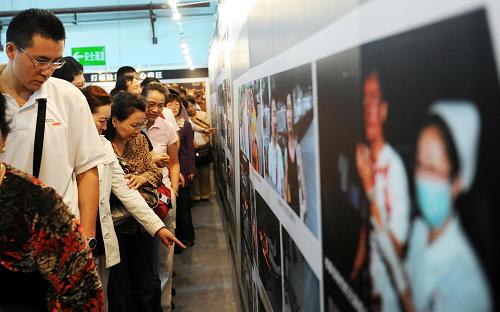 8月6日,觀眾在觀看平息“7·5”事件紀實圖片展。 新華社記者 沙達提 攝