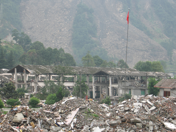 震不跨的五星紅旗(2008.7志愿者戴濤攝影)