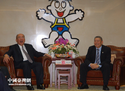 吳伯雄一行參觀位于上海的旺旺集團(tuán)總部,吳伯雄與旺旺集團(tuán)董事長蔡衍明相談甚歡。(攝影:中國臺灣網(wǎng) 田云鵬)