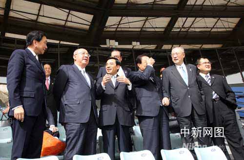 吳伯雄繞有興致地聽取了有關(guān)棒球場籌備情況的介紹,他坦言這里是臺(tái)灣觀眾最關(guān)注的場地,并期待兩個(gè)月后中華臺(tái)北棒球隊(duì)的健兒在這里大展身手,更相信大陸觀眾會(huì)給予他們最熱烈的助威。