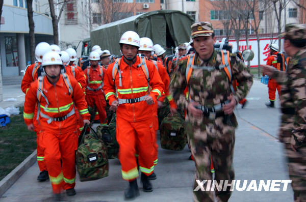4月14日,寧夏消防總隊官兵迅速集結,準備趕赴青海省玉樹縣地震災區。