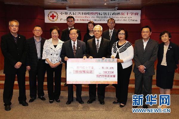 8月13日,澳門中華總商會向澳門紅十字會捐贈30萬澳門元,援助甘肅舟曲受災群眾。截至當日,澳門紅十字會共收到澳門社會各界向舟曲災區(qū)的捐款373.06萬澳門元。 新華社發(fā) (張金加攝)
