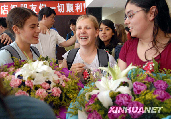 6月18日,在湖北宜昌,甲型H1N1流感確診患者密切接觸者解除集中隔離醫學觀察。來自美國的某中學生旅游團在宜昌市期間,有數名團員因出現流感樣癥狀被收治入院,其余團員于6月11日在該市開始集中隔離接受醫學觀察。6月18日下午,曾與甲型H1N1流感確診患者有過密切接觸,在宜昌接受集中醫學觀察的82名人員,全部順利完成隔離醫學觀察,結束隔離。新華社發(王永勝 攝)