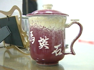馬英九用過的碗筷桌椅,屋主搜藏作紀念。