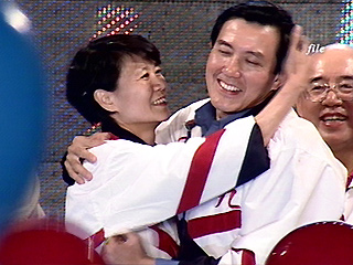 學馬嫂90度鞠躬,馬英九向選民道謝。