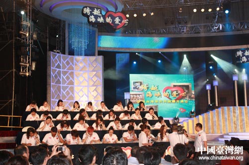 “跨越海峽的愛心——援助臺灣受災同胞賑災晚會”8月20日晚在北京舉行,圖為晚會現場,由兩岸娛樂界及體育界明星以及志愿者組成的愛心熱線方陣,他們接收著各界對臺灣同胞的溫情援助。(中國臺灣網 高斯斯 攝) |