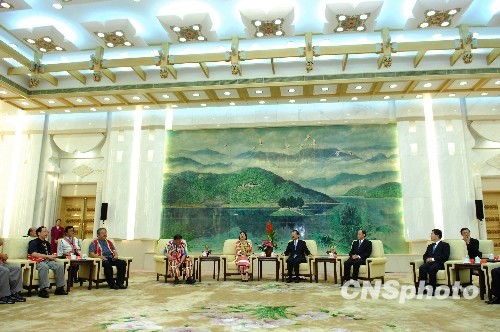8月19日下午,中共中央臺(tái)灣事務(wù)辦公室主任王毅在北京人民大會(huì)堂臺(tái)灣廳會(huì)見了臺(tái)灣少數(shù)民族代表高金素梅等一行,王毅對(duì)臺(tái)灣遭受臺(tái)風(fēng)“莫拉克”襲擊表示了深切的慰問。 中新社發(fā) 侯宇 攝
