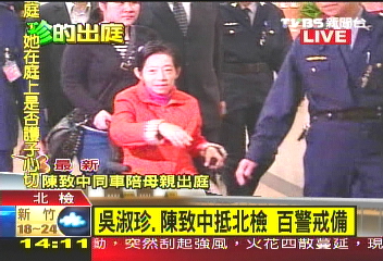 陳水扁家族弊案本月陸續開庭,今日傳喚吳淑珍出庭。下午2點10分許,吳淑珍身著桔色套裝抵達北檢。吳淑珍是否認罪備受關注。