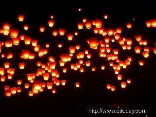 昨晚6時30分,臺北縣平溪鄉(xiāng)的壓軸天燈晚會“光耀北縣 美夢成真”隆重登場,臺北縣長周錫瑋施放了一個高達20尺的祈福天燈,并在燈上題字“天天富貴”。據(jù)稱,當?shù)刂鬓k單位也準備了2000個小天燈供民眾祈福施放。