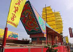 “寒單(丹)爺”又稱“玄壇爺”,是臺東地區(qū)漢人的民間信仰中相當獨特的一支,每年元宵節(jié)時,“寒單爺”出巡,一連兩天,伴隨著各路神明繞境,更成為地方盛事。迎“寒單爺”的儀式十分特別,真人所扮演的“肉身寒單”,面畫大花臉,頭系紅帽巾,手執(zhí)榕葉護體,上身赤裸地立于神轎上,在臺東市的大街小巷中逡巡;所到之處,店家、信眾無不熱烈地投以鞭炮。炮竹聲震耳欲聾,“寒單爺”卻仍面不改色,神氣活現(xiàn)。