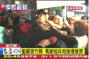 馬英九、謝長廷新竹拜票相遇 支持者爆發沖突(組圖)