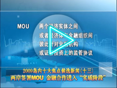 13、兩岸簽署MOU,金融合作進入“實質階段”。