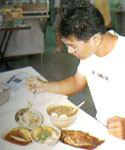 桃園開發(fā)歷史不算久遠,因此較缺乏“歷史性”的美食特色,然而各鄉(xiāng)鎮(zhèn)間有著頗大的地理差異,這種山海平原間的差異反而影響桃園人的飲食習(xí)慣,例如沿海地區(qū)的海鮮與陂塘中飼養(yǎng)的鵝鴨,中壢與龍?zhí)兑虻刎毝a(chǎn)花生,石門水庫、北橫、大漢溪等靠山濱水之地,亦提供了源源不絕的豐盛食材,形成今日桃園美食山海各異的地理特色。 桃園小吃雖未能在浩瀚的臺灣美食名錄中闖出名號,但業(yè)者憑借著數(shù)十年的經(jīng)驗累計,倒也開創(chuàng)了地區(qū)小吃的一片天空,如老牌新明牛肉面、金河冬粉丸等。而信宏鵝肉店則占盡新屋盛產(chǎn)鵝肉的地利之便,奠定鵝肉專賣的權(quán)威地位,此外,地方族群色彩融入滇緬風味,造就了云南村美食。而龍?zhí)兜幕ㄉ恰⑹T的活魚、大溪山溪產(chǎn)等,皆能充分發(fā)揮當?shù)靥厣S富了桃園美食的多樣性,也給予食客更多的選擇。 不一定醉飲酒小館 地址:大園鄉(xiāng)果林村坎下1—16號 電話:(03)383-0232 營業(yè)時間:1800~翌日0200 店內(nèi)特色:醬油拌飯、菜脯蛋、蜜汁炸排骨、臘肉炒高麗菜、芭樂茶 位于中正機場航空貨運站入口旁,屋舍是由谷倉及豬舍改建,墻上盡是老海報及唱片封套,老裁縫機、紅眠床、倒過來放的大米桶都是桌子,碗也是笨重的古董,一派舊日風情;店內(nèi)沒有菜單,任由小二端出醬油拌飯、菜脯蛋、臘肉炒高麗菜、煎白帶魚等,全是古早味。 老牌新明牛肉面 地址:中壢市民權(quán)路65號 電話:(03)493-5896 營業(yè)時間:0700~2330 店內(nèi)特色:牛肉面、炸醬面 于新明市場旁開業(yè)至今近40年,然而口味、店面風格卻始終沒有改變,不時傳出濃郁牛肉香,予人極深印象,除了叫碗香辣的牛肉面,還可點幾盤牛內(nèi)臟,來個全牛大餐。因為名氣實在太大,中壢出現(xiàn)了好幾家同名的牛肉面店,但老牌新明別無分號,餐客可別走錯! 龍?zhí)痘ㄉ浱?/B> 滿庭香花生糖 地址:龍?zhí)多l(xiāng)圣亭路169號 電話:(03)479-1533,479-6007 營業(yè)時間:0700~2100 店內(nèi)特色:姜汁花生軟糖、椰味花生軟糖、茶香花生軟糖 龍情食品 地址:龍?zhí)多l(xiāng)龍元路164號 電話:(03)489-6569 營業(yè)時間:0800~2100 店內(nèi)特色:麥香花生軟糖、巧果花生糖、小月餅 龍香食品 地址:龍?zhí)多l(xiāng)北龍路302號 電話:(03)489-0970 營業(yè)時間:0800~2100 店內(nèi)特色:綠茶花生軟糖、海苔花生軟糖 滿庭香為龍?zhí)痘ㄉ浱堑膭?chuàng)始店,鑒于硬式花生糖不受老人與小孩的歡迎,于是以麥牙糖作底創(chuàng)造出花生軟糖;而由于麥芽多白糖少,因此較不粘牙。口味上,除了原味外,尚添加了姜汁、椰味、茶香、海苔、香菜等,甚至深受年輕人喜愛的巧克力,也成為新一代產(chǎn)品的主角。除了滿庭香,其第二代所經(jīng)營的龍情、龍香等名號,不僅傳承了老店的風味,在包裝與店面方面更趨新潮,為龍?zhí)痘ㄉ浱亲⑷胄卵? 信宏鵝肉店 地址 新屋鄉(xiāng)中山路404號 電話 (03)477-2226 營業(yè)時間 1030~2000 休息時間 周休二日后之周一 店內(nèi)特色:全鵝切盤、炒鵝腸、鵝下水湯、客家飯條 采用當?shù)匾杂衩住⒉诿罪曫B(yǎng)的土鵝,因此體內(nèi)無積物、煮出來的肉色略帶粉紅,油多肉厚,吃起來滑中帶韌,還帶有獨特的甜味及香氣。白切鵝肉為招牌菜,但鵝頭、鵝肫、鵝腸等亦極鮮美,沾醬是以鵝高湯拌和客家豆醬與九層塔調(diào)味,可增添鵝肉鮮味。 金河冬粉丸 地址 桃園市復(fù)興路342號 電話 (03)337-7638,319-1494 營業(yè)時間 0630~2100 休息時間 農(nóng)歷每月1、15日(遇假日順延) 店內(nèi)特色 冬粉魚丸、鹽水南洋魚、虱目魚肚、瓜子肉飯 30多年的老字號,湯頭以中藥、香料、蝦米、扁魚制成的獨門沙茶醬調(diào)味,讓自制的魚丸更有味道,而店中無論是魚丸餡、瓜子肉、滷肉,都是用黑豬肉現(xiàn)滷現(xiàn)做,而且都是上肉,絕不油膩;此外,臺南來的鹽水南洋魚,是以咸水魚場養(yǎng)殖,沒有土腥味,肉質(zhì)細致,再以客式豆醬清蒸,風味獨具。 彩麥莊紅中青發(fā)白板面食館 地址 八德市介壽路二段1182號 電話 (03)368-7373 營業(yè)時間 10000~2100 店內(nèi)特色 三色牛肉面、三色大滷面、三色水餃 看似怪異的店面,其實巧妙點出了本店的特色,店主將菠菜及胡蘿卜打成汁,直接加入面粉中攪拌,做出綠色的“青發(fā)面”和淺紅色的“紅中面”,不僅色彩美麗,更多了幾分健康。由于無法長期存放,因此都要現(xiàn)做,晚來便吃不到。店中還有三色水餃,同樣也是招牌。 陳記小吃 地址 平鎮(zhèn)市忠貞里中山路95號 電話(03)436-1452,466-7707 營業(yè)時間 0530~1300 店內(nèi)特色 米干、米線、豌豆粉、云南泡菜、涼面 平鎮(zhèn)市忠貞里為一處滇緬移民的眷村,在忠貞市場附近即有多家云南小吃店,提供道地滇面美食,其中尤以店齡40年的陳記小吃,最能保有云南原味。店里的米干、米線、豌豆粉皆為云南家常小吃,米干及米線均為純在來米做成,口感有如客家飯條,豌豆粉則是將豌豆磨成粉,蒸熟放涼后自然結(jié)成凍狀,滑潤爽口,而以草果、花椒、芫萎子等香料制成的醬料更是少不了,若再加上酸辣的云南泡菜,風味更佳。 |