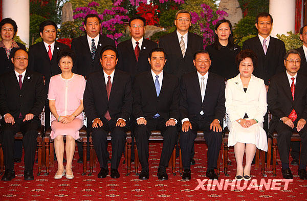 11月6日,馬英九在臺北賓館會(huì)見海協(xié)會(huì)會(huì)長陳云林一行。這是雙方合影。新華社記者 邢廣利 攝