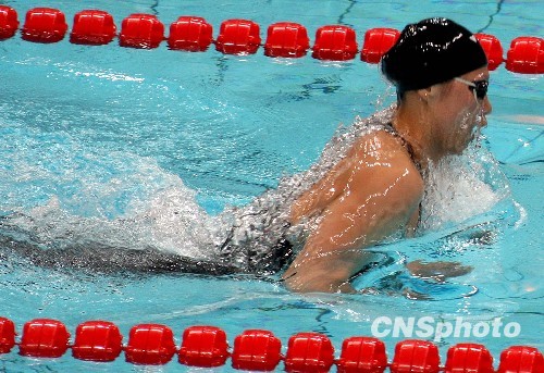 10月20日晚,在濟南奧體中心游泳館進行的女子200米個人混合泳決賽中,解放軍代表隊的齊暉以2:08.32的成績獲得冠軍,并打破了亞洲紀錄。圖為齊暉在比賽中。中新社發(fā) 劉震 攝