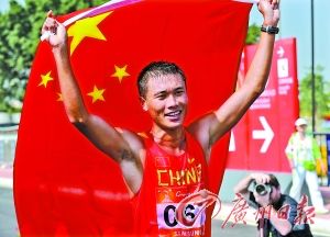 在田徑男子50公里競(jìng)走比賽中,司天峰以3小時(shí)47分04秒的成績(jī)奪冠。