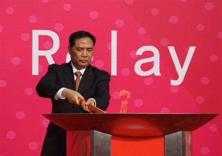 9點(diǎn)40分左右,火炬護(hù)衛(wèi)隊(duì)護(hù)送火種燈和火炬上臺(tái),廣州市檢察院黨組書(shū)記、檢察長(zhǎng)王福成上臺(tái)點(diǎn)燃火種盆;9點(diǎn)42分左右,廣州市委常委、廣州經(jīng)濟(jì)技術(shù)開(kāi)發(fā)區(qū)管委會(huì)主任、黨工委書(shū)記、蘿崗區(qū)委書(shū)記凌偉憲上臺(tái)點(diǎn)燃火炬交給第一棒火炬手中國(guó)殘聯(lián)愛(ài)心大使、廣州亞殘運(yùn)會(huì)愛(ài)心大使南欣并宣布火炬?zhèn)鬟f活動(dòng)開(kāi)始;9點(diǎn)45分左右第一棒火炬手正式起跑。