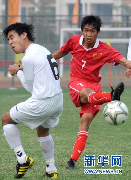 12月13日,中國隊球員林聰昌(右)在比賽中起腳射門。當日,在廣州2010年亞殘運會七人制足球首場比賽中,中國隊以4比2戰勝韓國隊,首戰告勝。新華社記者韓傳號攝
