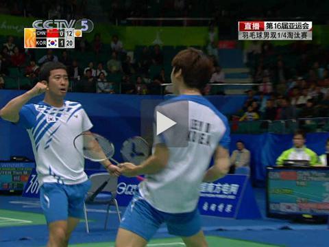 羽毛球男雙淘汰賽:蔡赟傅海峰vs鄭在成李龍大