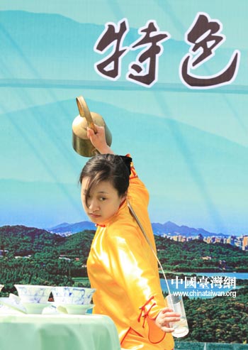 30日上午,2009年“我愛西湖,我愛龍井茶”西湖龍井茶特色展示活動在杭州市涌金廣場隆重舉行。圖為中國茶都茶藝表演隊精彩的茶藝展示。(中國臺灣網 田云鵬 攝)