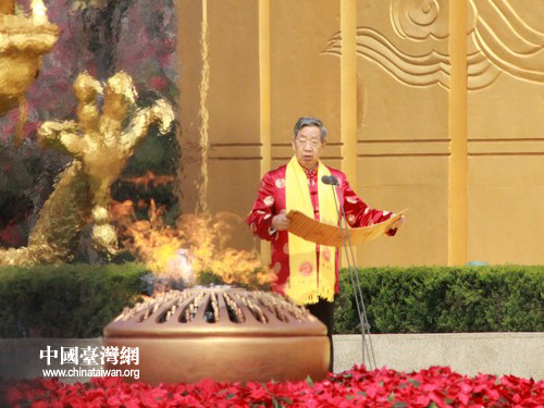 十屆全國人大常委會副委員長、中華炎黃文化研究會會長許嘉璐恭讀《拜祖文》。(中國臺灣網 馬迪 攝)