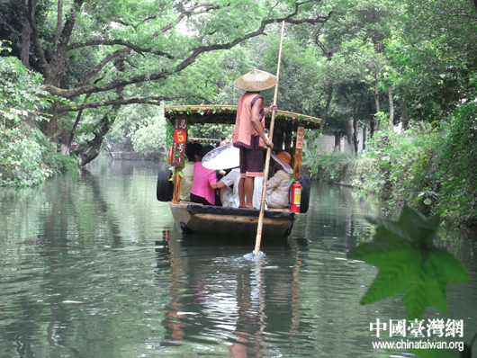 載著臺灣嘉賓的船行駛在河中(中國臺灣網 蕪同 攝)