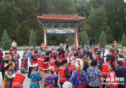 臺灣少數民族敦煌文化之旅參訪團在肅南裕固族自治縣與當地少數民族聯歡(圖片來源:甘肅省臺辦)