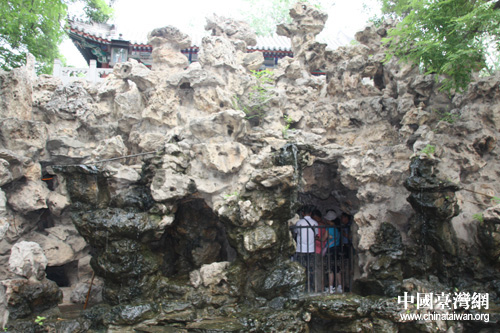 恭王府內著名景點——滴翠巖,康熙御筆題寫的“福”字藏于巖內洞中。(中國臺灣網 肖燕 攝)