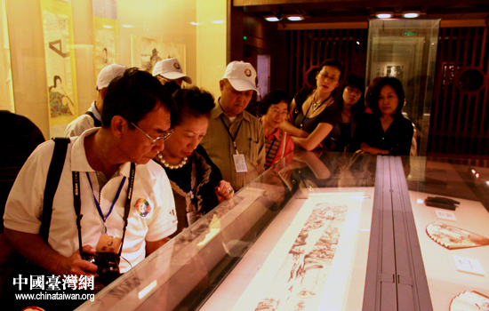 11日,參加“情系巴蜀 兩岸文化聯(lián)誼行”活動的兩岸嘉賓在四川省博物院欣賞張大千畫作。(中國臺灣網(wǎng) 張瑞宸 攝)