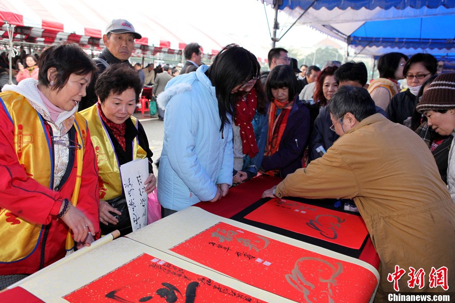 2月12日下午,冒著冷風(fēng)細(xì)雨,臺(tái)灣數(shù)千名書法家及愛好者在臺(tái)北揮毫,迎接辛卯新春。現(xiàn)場(chǎng)翰墨飄香,展現(xiàn)書藝傳承,充滿文化氣息。中新社記者 董會(huì)峰 攝