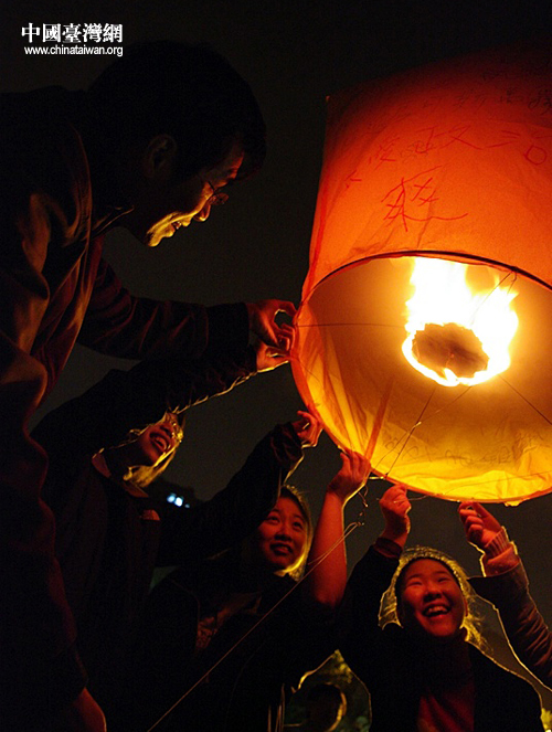中國臺灣網2月16日臺北消息 臨近正月十五,全臺鬧元宵,到平溪放天燈許心愿則成為臺灣民眾在這一天最喜愛的傳統活動之一。天燈相傳為諸葛亮發明,亦稱為孔明燈,古時被當作信號燈,近代已演變為平安吉祥的象征。人們借著緩緩上升的天燈,期望自己心愿能上達天庭,無論祈求的是健康、學業、愛情,還是事業。