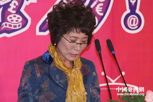 中國網絡電視臺副總經理王秀云在新聞發(fā)布會上致辭(中國臺灣網董憲超攝)