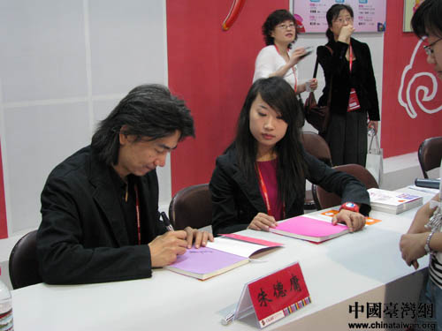 朱德庸現(xiàn)場為讀者簽名(中國臺灣網(wǎng) 石慧 攝)