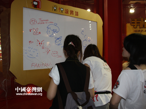漫迷們在閱悅題板上涂鴉(中國臺灣網 李丹 攝)