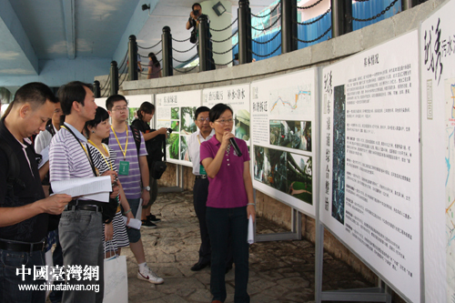 媒體團的記者們聽取東濠涌治理工程情況的具體介紹(中國臺灣網 趙輝 攝)