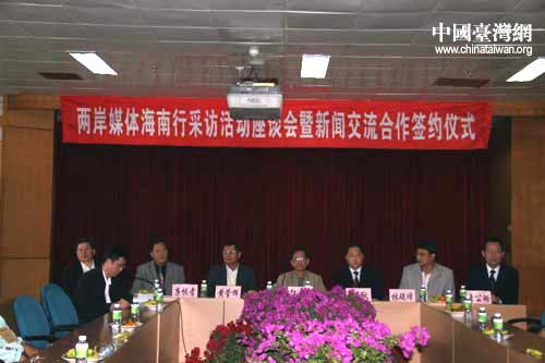 兩岸媒體海南行采訪活動座談會暨新聞交流合作簽約儀式。(李杰 攝)