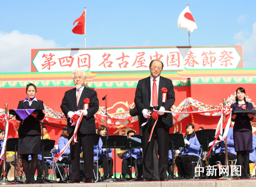 2月5日,日本中部地區(qū)華僑華人迎來盼望已久的節(jié)日——第四屆名古屋春節(jié)祭。上午11時(shí),中國(guó)駐名古屋總領(lǐng)事張立國(guó)(右)和日本愛知縣日中友好協(xié)會(huì)會(huì)長(zhǎng)后藤淳(左)等眾嘉賓一起為春節(jié)祭剪彩。關(guān)妍 攝