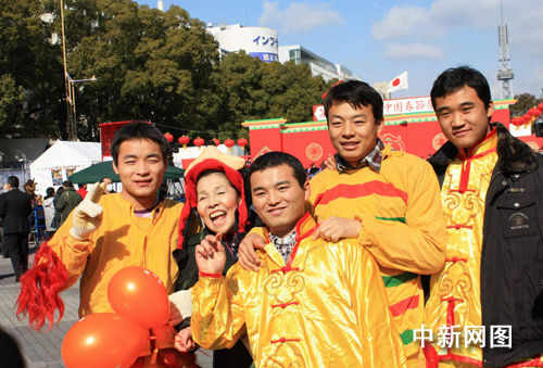 春節(jié)祭正面舞臺(tái)為名古屋市民獻(xiàn)上的是在日中部地區(qū)華僑華人團(tuán)體、留學(xué)生、研修生以及日本當(dāng)?shù)氐纳鐖F(tuán)、學(xué)校選送的文藝節(jié)目。在主會(huì)場(chǎng)還有14家小吃店鋪以及41家物產(chǎn)、企業(yè)的宣傳攤位。值得一提的是,這中間不僅僅是華僑華人的店鋪,日本的大企業(yè)、日式旅店、電信公司、觀光宣傳部門都有參加。市民從四面八方源源不斷地被吸引過來,會(huì)場(chǎng)里面的人越聚越多。一邊品嘗美食一邊欣賞演出,有的市民還拉住表演完節(jié)目的身著鮮艷中國(guó)少數(shù)民族服裝、舞龍舞獅的中國(guó)留學(xué)生,熱情地與他們攀談、合影留念,讓記者無不感慨名古屋普通市民對(duì)中國(guó)文化的濃厚興趣和對(duì)中國(guó)人的友好情誼。