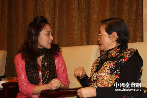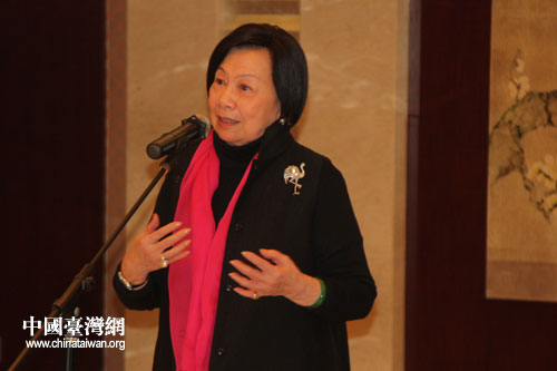 出席海峽兩岸京劇藝術(shù)論壇的臺(tái)灣海基會(huì)前董事長(zhǎng)辜振甫遺孀、臺(tái)灣中華婦聯(lián)總會(huì)主任委員辜嚴(yán)倬云,在兩岸京劇票友聯(lián)誼活動(dòng)現(xiàn)場(chǎng)演唱《鎖麟囊》選段春秋亭。(中國(guó)臺(tái)灣網(wǎng) 董潔 攝)