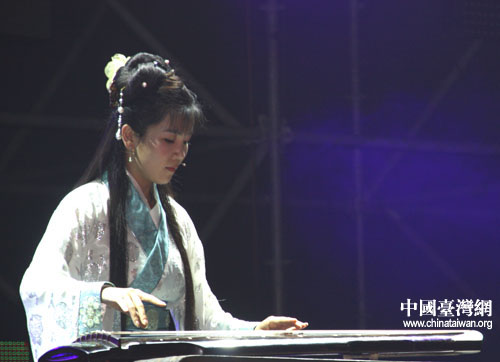 孔廟古琴教師朱慧鵬為兩岸師生作了太極舞劍和古琴表演,他表示,孔子倡導“六藝”,希望兩岸師生以傳統文化為紐帶,促進兩岸青少年的了解和友誼。他在舞劍表演時,一手持劍一手書寫漢字“和”,就是希望兩岸共建和諧中華。