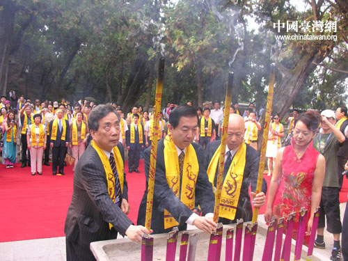 中國臺灣網7月19日陜西黃陵縣消息 7月19日,參加“情系長安——兩岸文化聯誼行”活動160余位兩岸文化界人士,共同在黃帝陵恭祭軒轅黃帝,并栽植紀念林。