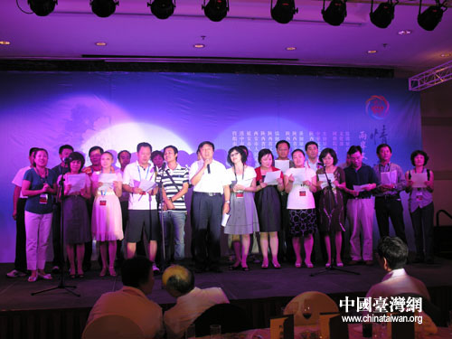 中國(guó)臺(tái)灣網(wǎng)7月23日西安消息 由中華文化聯(lián)誼會(huì)與陜西省政府主辦的“情系長(zhǎng)安——兩岸文化聯(lián)誼行”,21日晚在古城西安圓滿閉幕。閉幕式上,參加此次活動(dòng)的文化界人士為慶祝這次兩岸文化界的盛舉圓滿成功,舉行了一場(chǎng)別開生面的大聯(lián)歡。無(wú)論是衣冠楚楚的教授還是彬彬有禮的文化官員,無(wú)論是滿腹經(jīng)綸的學(xué)者,還是各有所長(zhǎng)的藝術(shù)家,每個(gè)人拿出看家本領(lǐng),各顯其能,讓閉幕式沉浸在歡歌笑語(yǔ)中。