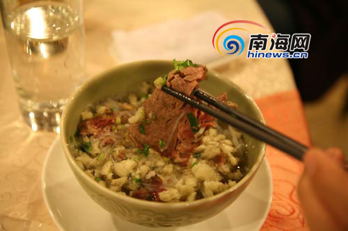 成品的牛肉泡饃。(南海網記者 史莎 攝)