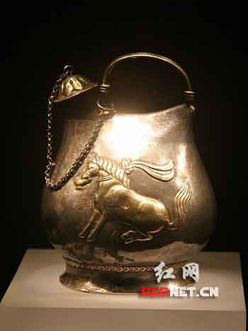 西安何家村窖藏,因1970年出土于西安市何家村而得名。一處基建施工的工地,突然發(fā)現(xiàn)了一個(gè)陶甕和一個(gè)銀罐,文物工作者趕到后,又發(fā)現(xiàn)了第二個(gè)陶甕。就是這看似普通的兩個(gè)陶甕和一個(gè)銀罐里,有1000多件金銀玉器、貴重藥物和中外錢(qián)幣等珍貴文物,金銀玉器種類繁復(fù)、工藝精美,其中收藏的中外錢(qián)幣西至日本奈良,東至伊斯坦布爾。更有如今陜西歷史博物館的鎮(zhèn)館之寶,鑲金獸首瑪瑙杯和鎏金舞馬銜杯紋銀壺。